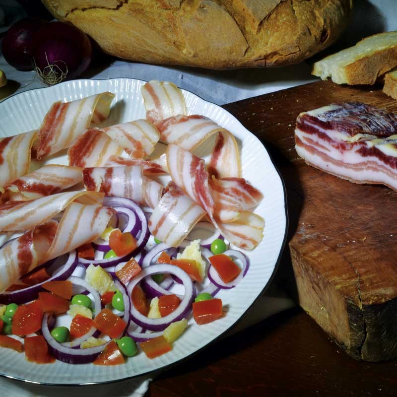 La Pancetta tesa Nostrana è un salume molto conosciuto e diffuso in tutto il territorio Italiano e il Caseificio Stirparo è un grande produttore di pancetta. Viene utilizzata la parte della pancia del maiale che risulta abbastanza grassa e saporita.